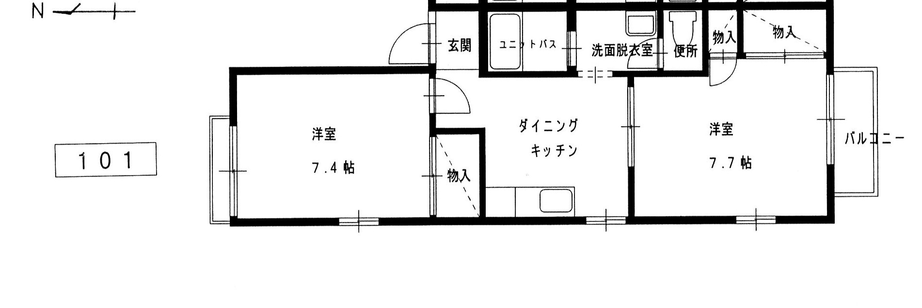 | 間取り | 2DK (洋室:7.4、7.7) DK5.3 |