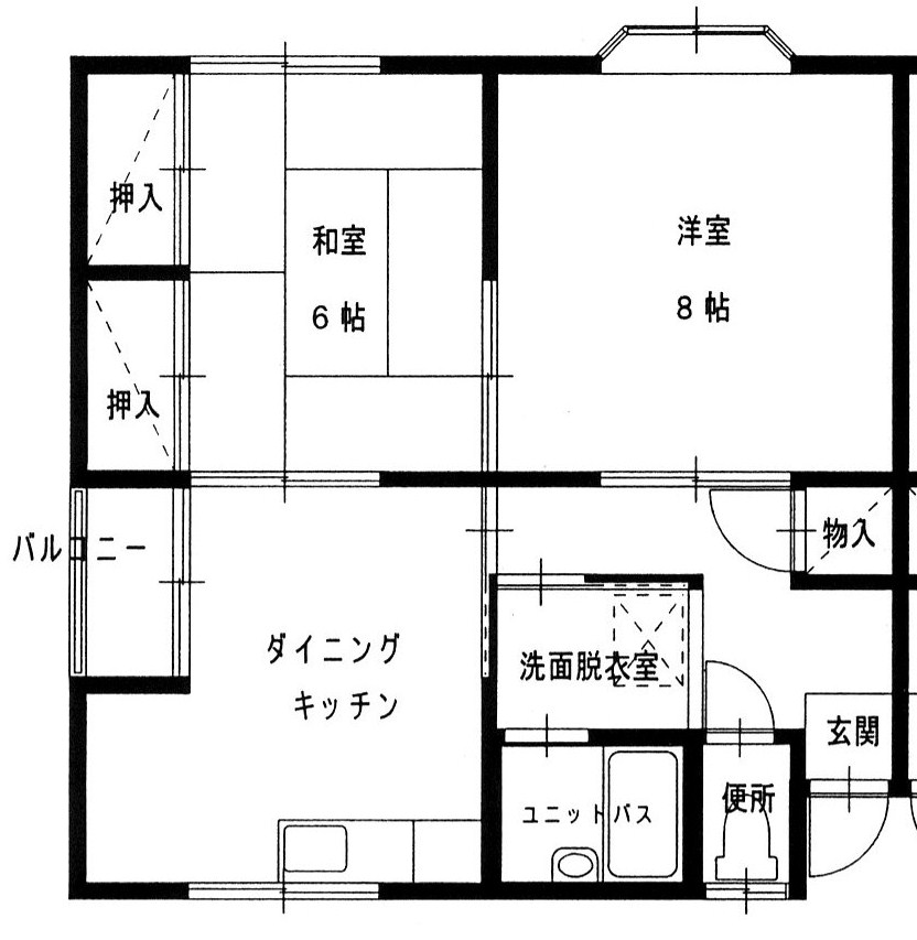 | 間取り | 2DK (和室:6畳) (洋室:8) | ||