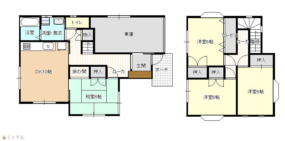 | 間取り | 4DK (和室:6畳) (洋室:6、6、6) DK10 |