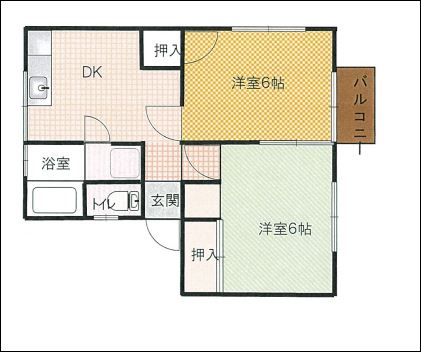 | 間取り | 2DK (洋室:6、6) ウォシュレット/シャワー/エアコン |