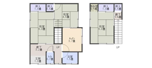 | 間取り | 3DK (和室:6畳、6畳、4.5畳) DK |