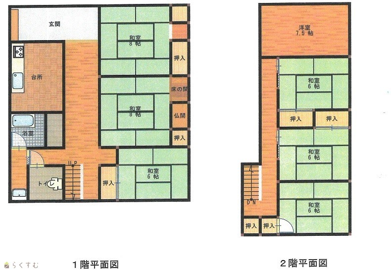 | 間取り | 7DK (和室:6畳、8畳、8畳、6畳、6畳、6畳) (洋室:7.5) | ||