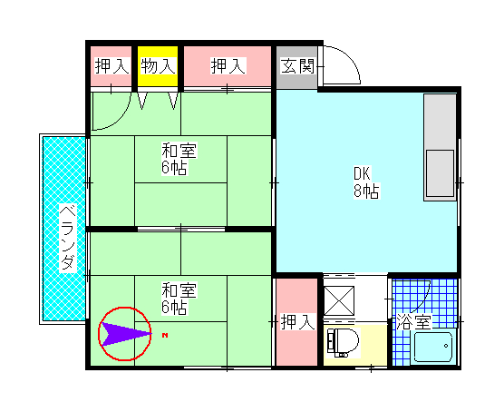 | 間取り | 2DK (和室:6畳、6畳) DK8 |