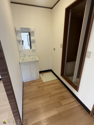 脱衣所と洗面台あり。工夫次第で、見せる場所と隠す場所を分けられ、自分だけのお部屋にしてください♪