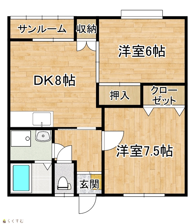 | 間取り | 2DK (洋室:7.5、6) DK8 |