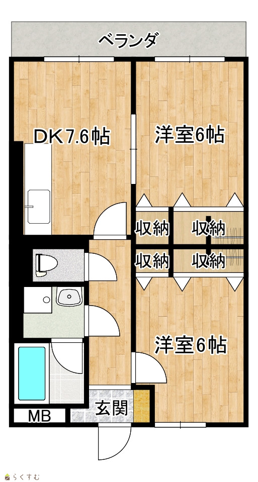 | 間取り | 2DK (洋室:6、6) DK7.6 |