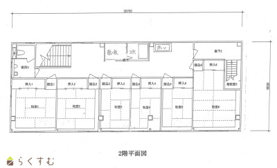 | 間取り | LDK (和室:10畳、6畳、6畳、6畳、8畳、8畳、6畳) LDK約23畳 浴室1階に1か所・2階に1か所 トイレ各階に1か所 2階各室入口ドアは鍵付エアコン付 駐車場6~7台 |