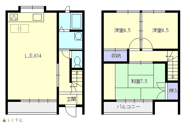| 間取り | 3LDK (和室:7.5畳) (洋室:4.5、4.5) | ||