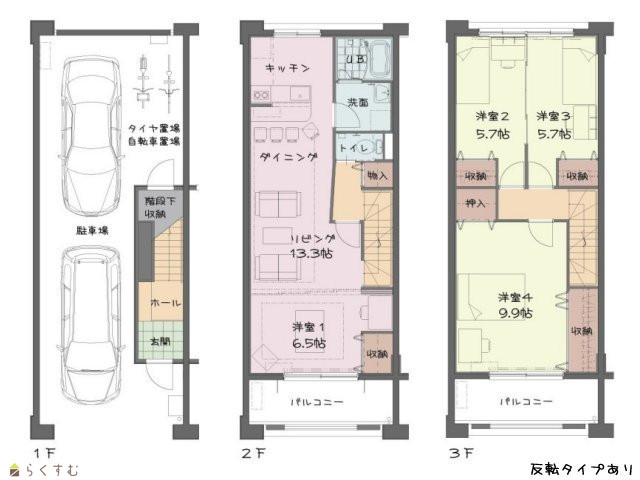 間取り 4LDK (洋室:6.5、5.7、5.7、9.9)