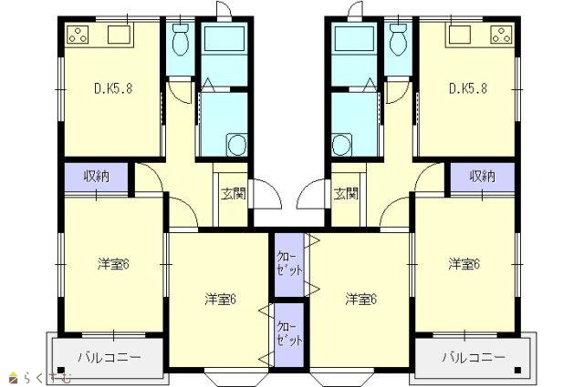 間取り 2DK (洋室:6.0、6.0)