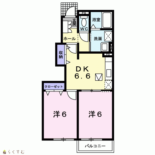間取り 2DK (洋室:6.0、6.0)