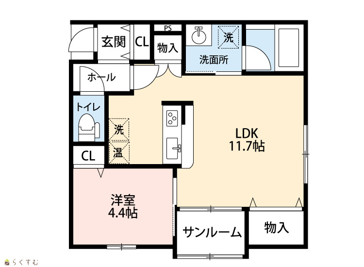 | 間取り | 1LDK (洋室:4.4) LDK11.7 |