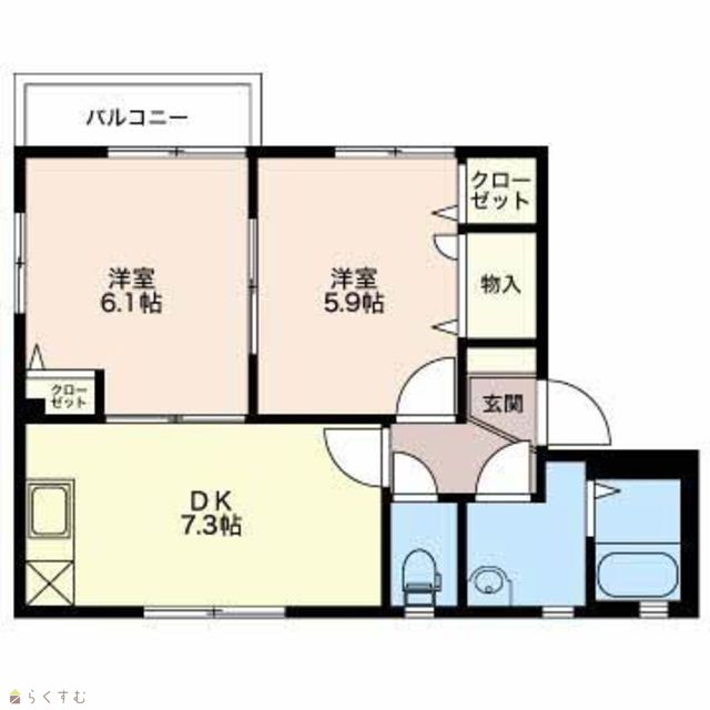 | 間取り | 2DK (洋室:6.1、5.9) | ||