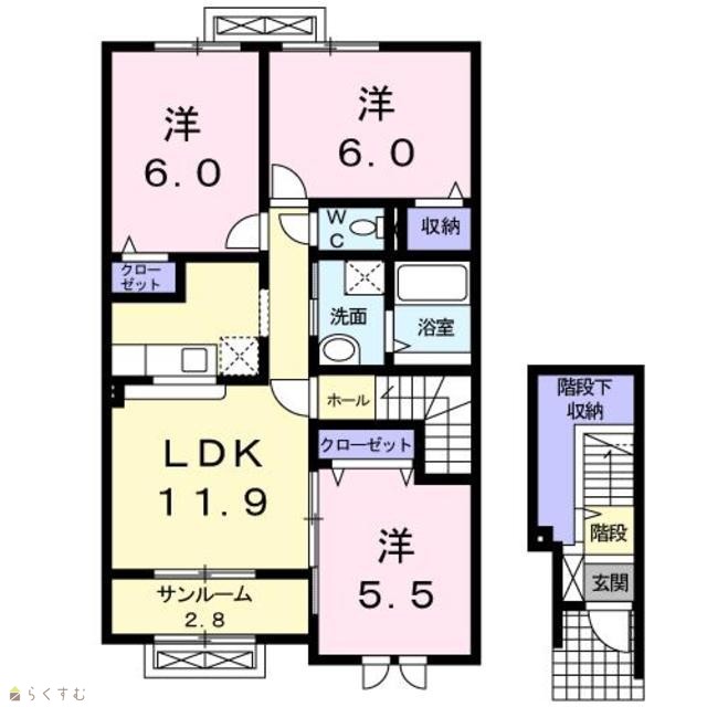 | 間取り | 3LDK (洋室:6、6、5.5) | ||