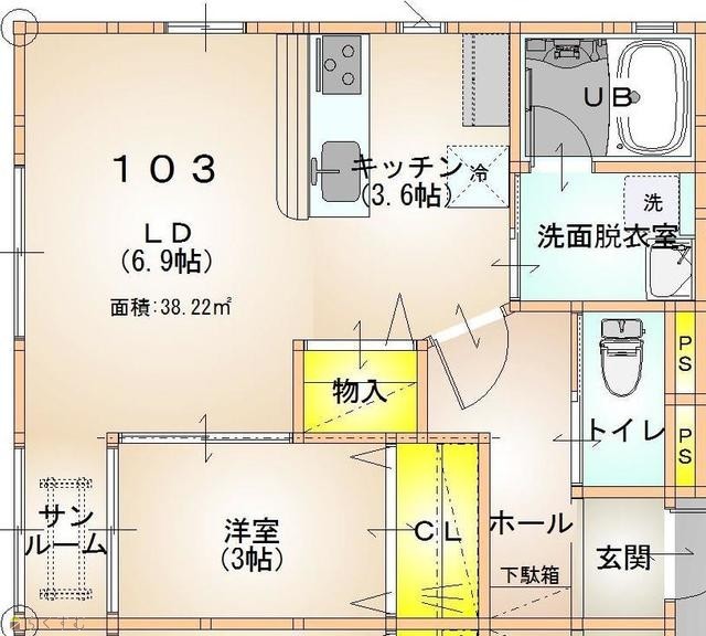 | 面積 | 38.22㎡ /11.56坪 | 方位 | 南西 |