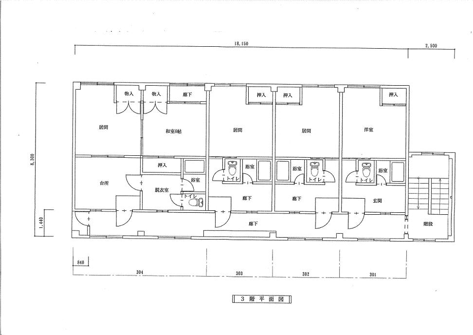 | 所在階/階数 | 3階/3階 | 号室 | 301号室 |