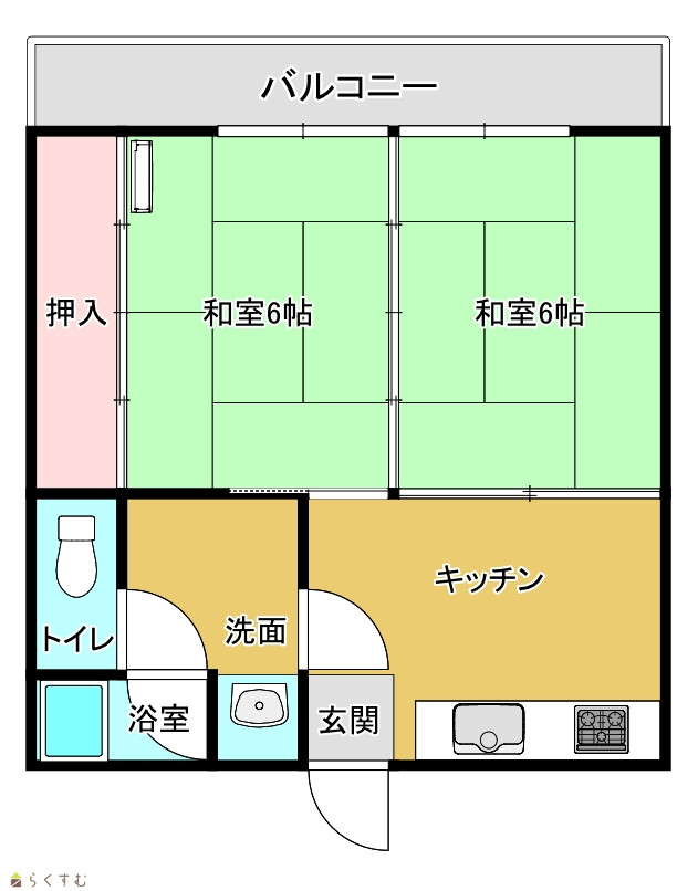 | 間取り | 2DK (和室:6.0畳、6.0畳) | ||