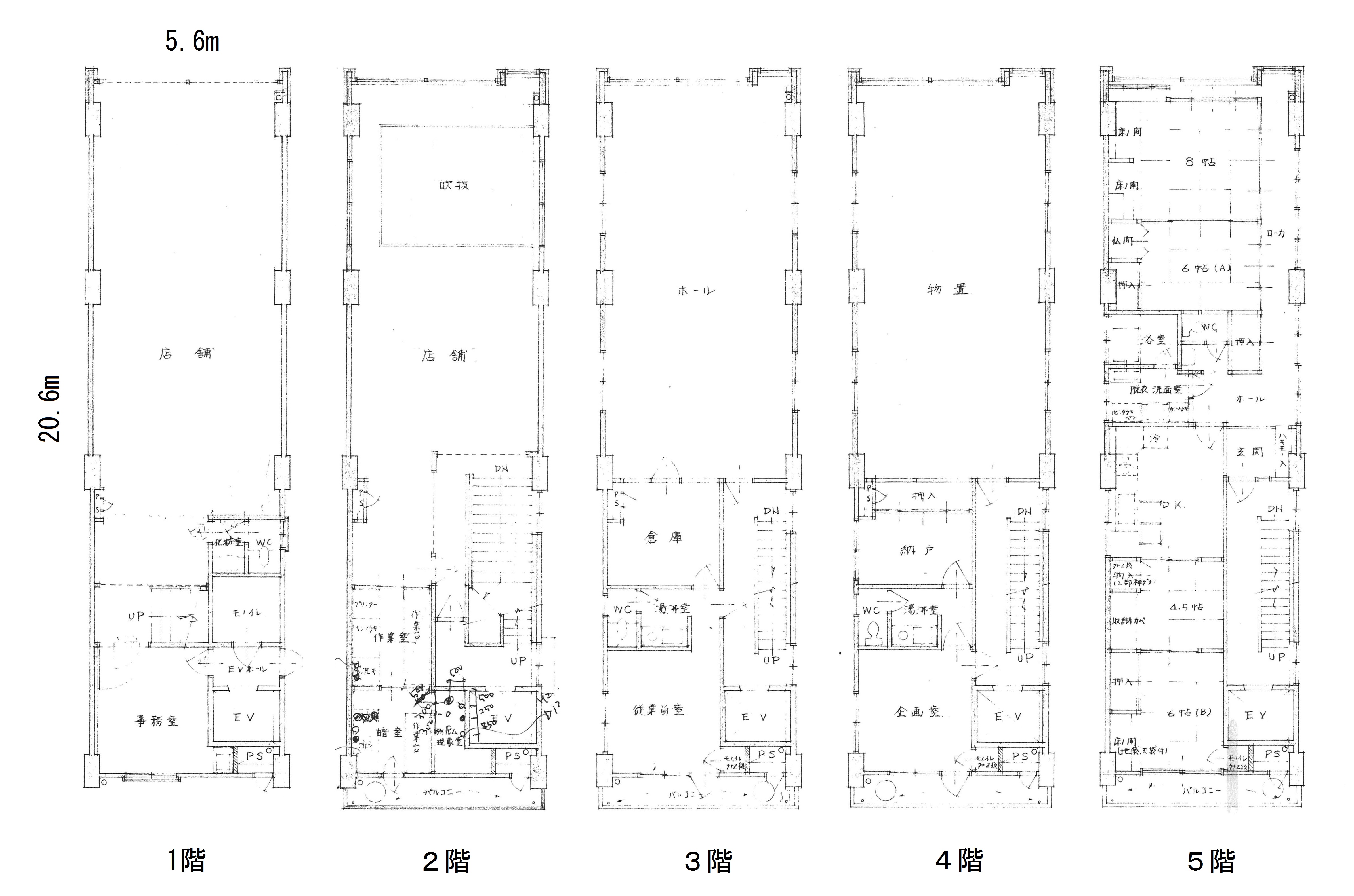 | 備考 | 1階、2階は飲食店居抜き、厨房機器等もあります。 5F部分は住宅(4DK)です。 |