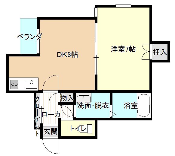 | 間取り | 1DK (洋室:6.9) DK8.2 |