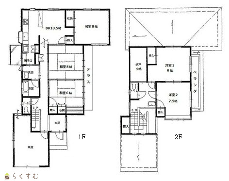 | 間取り | 5DK (和室:8畳、8畳、6畳) (洋室:9、7.5) DK10.5 |