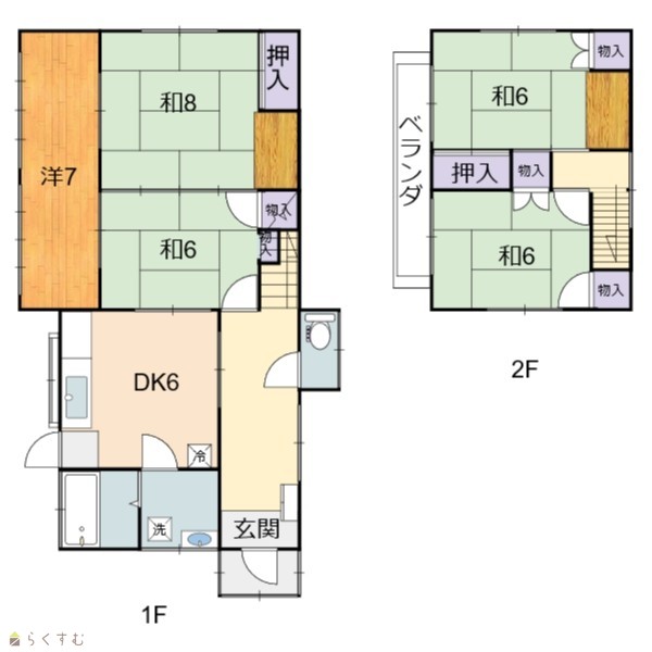| 間取り | 5DK (和室:8畳、6畳、6畳、6畳) (洋室:7) DK6 |