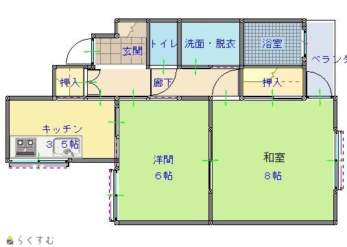 間取り 2K (和室:8畳) (洋室:6)