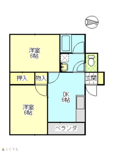 間取り 2DK (洋室:6、6)