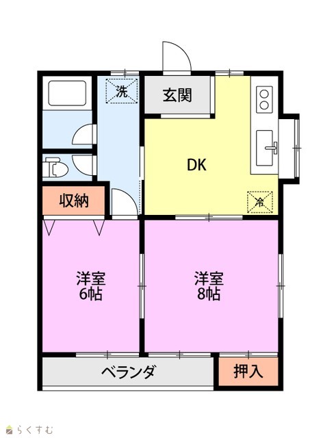 | 間取り | 2DK (洋室:8、6) | ||