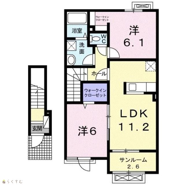 | 間取り | 2LDK (洋室:6、6.1) | ||