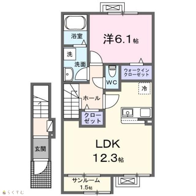 間取り 1LDK (洋室:6.1)