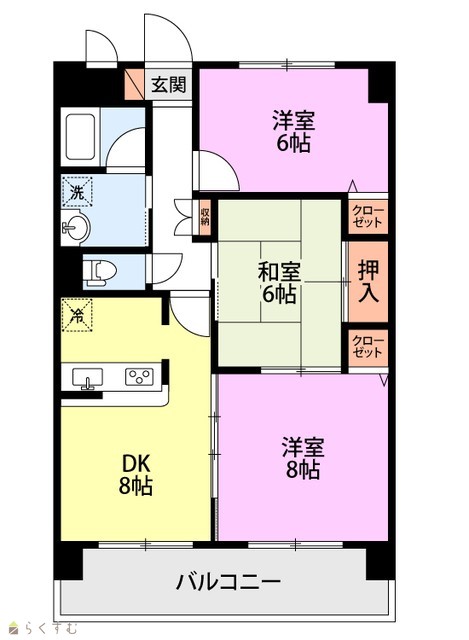 間取り 3DK (和室:6畳) (洋室:8、6)