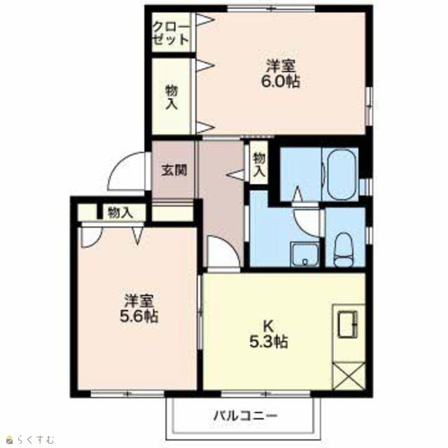 | 間取り | 2K (洋室:5.6、6) | ||