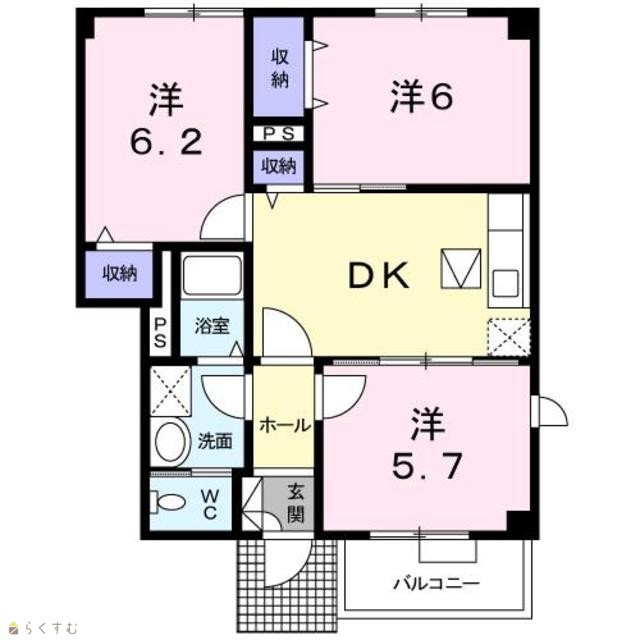| 間取り | 3DK (和室:6畳) (洋室:6.1、6.2) | ||
