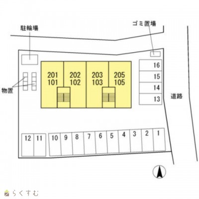 | 所在階/階数 | 1階/2階 | 号室 | 101号室 |