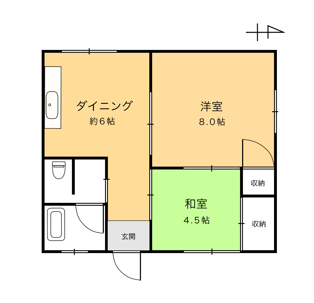 | 間取り | 2DK (和室:4.5畳) (洋室:8) | ||