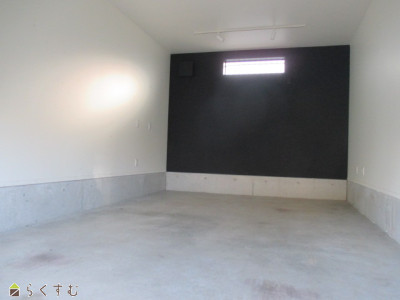 電動シャッター、広々したガレージ
