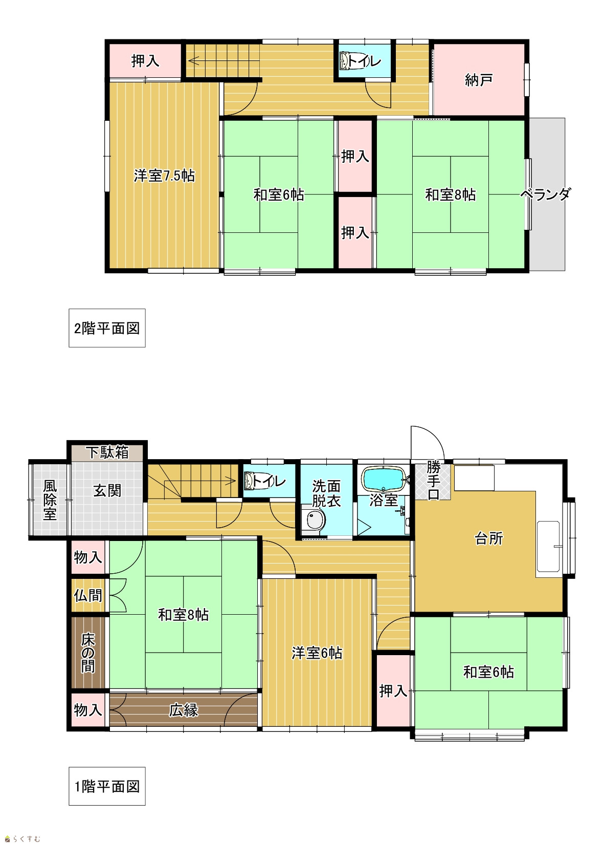 | 間取り | 6DK (和室:8畳、6畳、8畳、6畳) (洋室:6、7.5) DK8 納戸 |