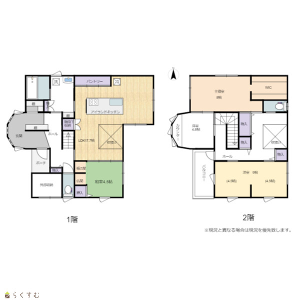 | 間取り | 4LDK (和室:4.5畳) (洋室:4.5、4.5、8.0) LDK17.7 書斎4.8 |
