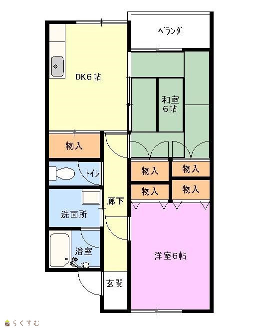 | 間取り | 2DK (和室:6畳) (洋室:6) DK6 |
