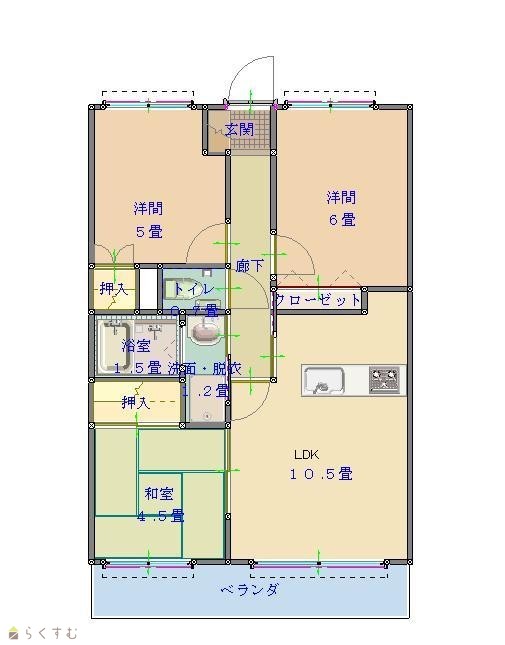| 間取り | 3LDK (和室:4.5畳) (洋室:6、5) LDK10.5 |