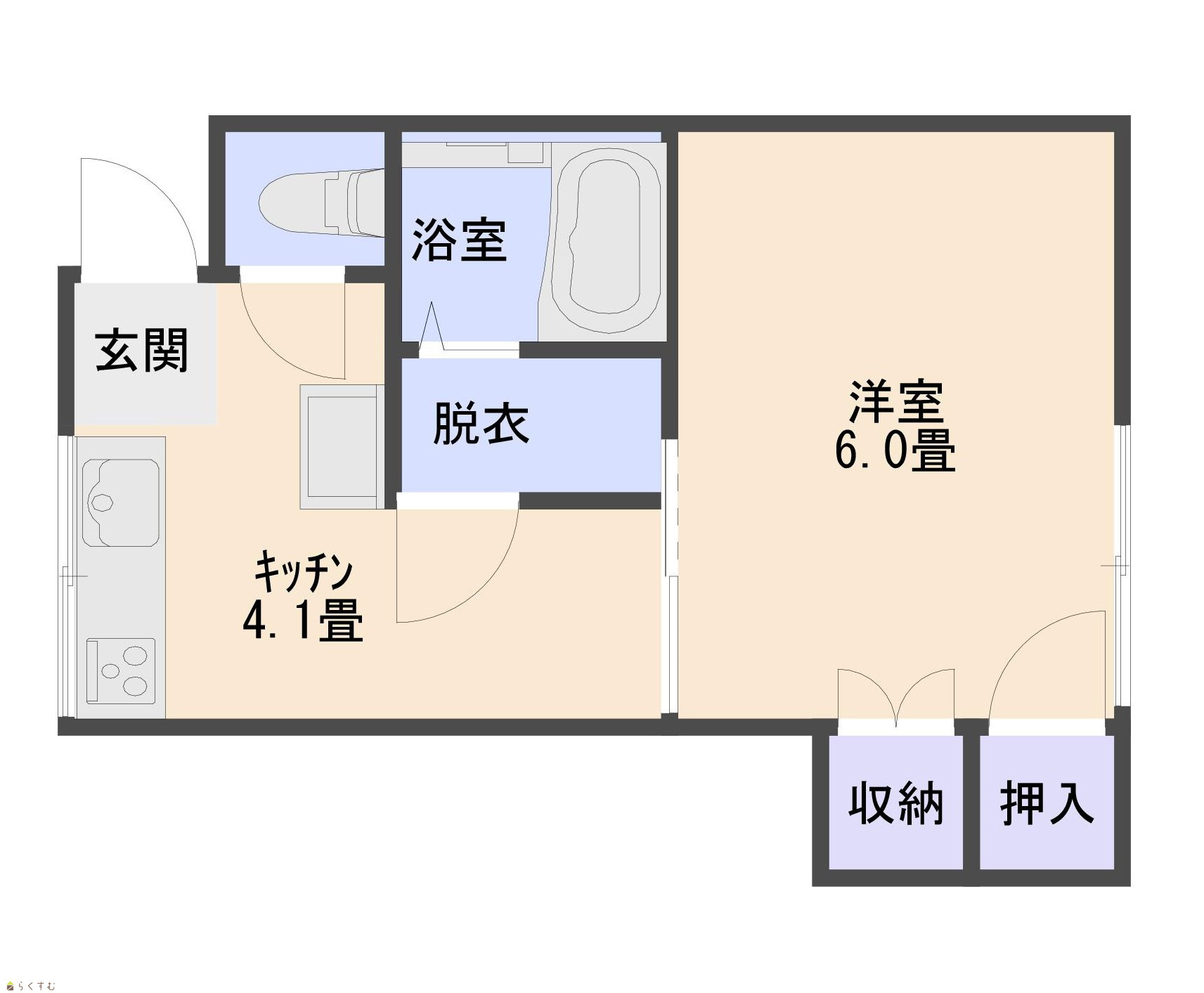 間取り 1K (洋室:6)