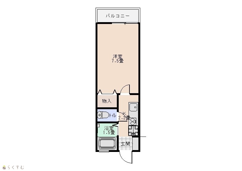| 間取り | 1K (洋室:7.5) | ||