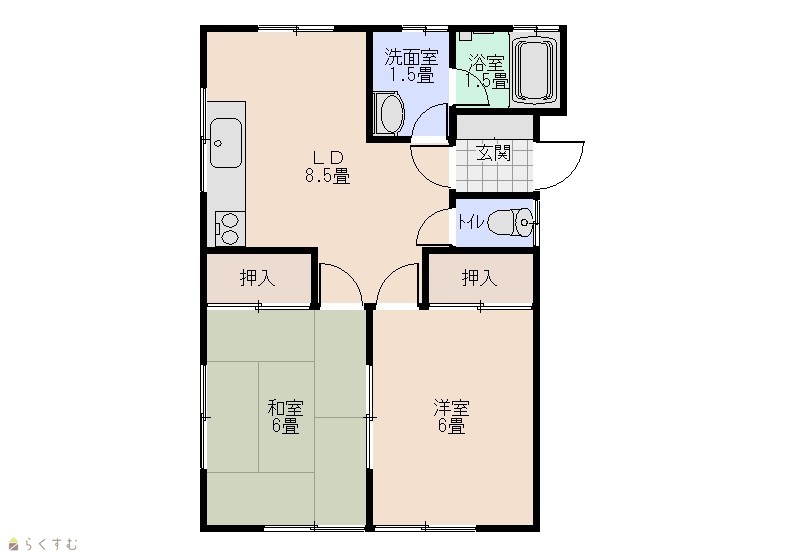 | 間取り | 2DK (和室:6畳) (洋室:6) DK8.5 |