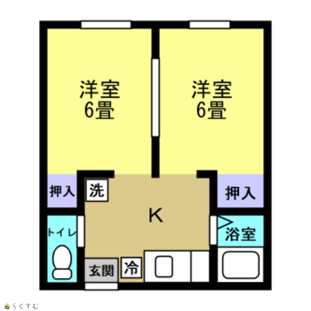 間取り 2K (洋室:6、6)