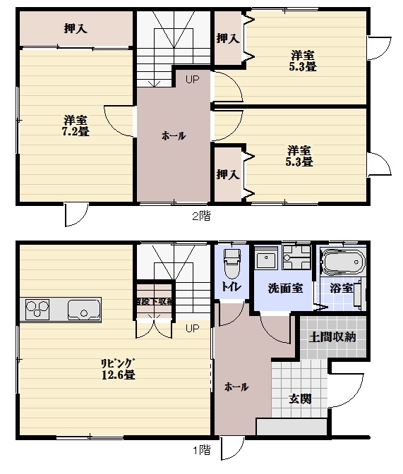 | 間取り | 3LDK (洋室:7.2、5.3、5.3) LDK12.6 |