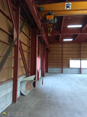 | 備考 | 1階部分一部貸(倉庫管理規則あり) 天井クレーン付(2.8t)、 敷地内消雪設備あり、 トイレ・水道は使用できます |