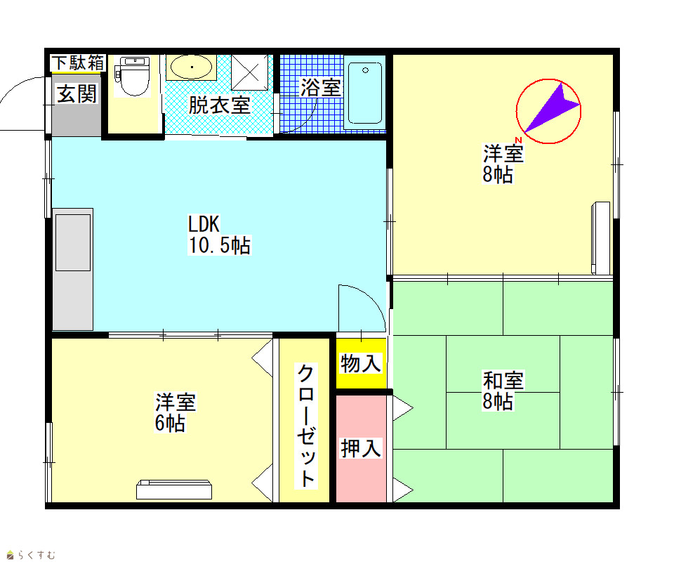 | 間取り | 3LDK (和室:8畳) (洋室:8、6) LDK10.5 |
