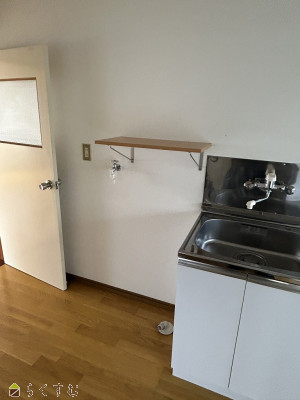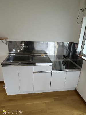 | 吊収納の下がベットスペース!残念なことに、冷蔵庫は台所に置けません。居室内に設置してください。 | |||