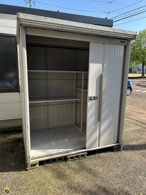 公園目の前にあるタクボ物置です。シーズンオフの物を保管するのに便利な大きさ。広さ1畳・高さ1.8m