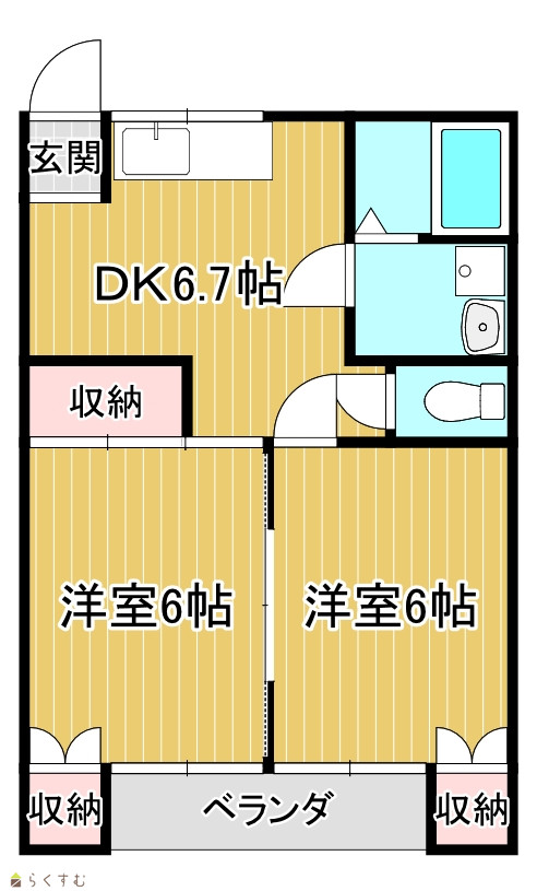 | 間取り | 2DK (洋室:6、6) DK6.7 |